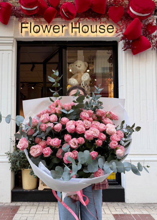 French Roses with White Ruscus