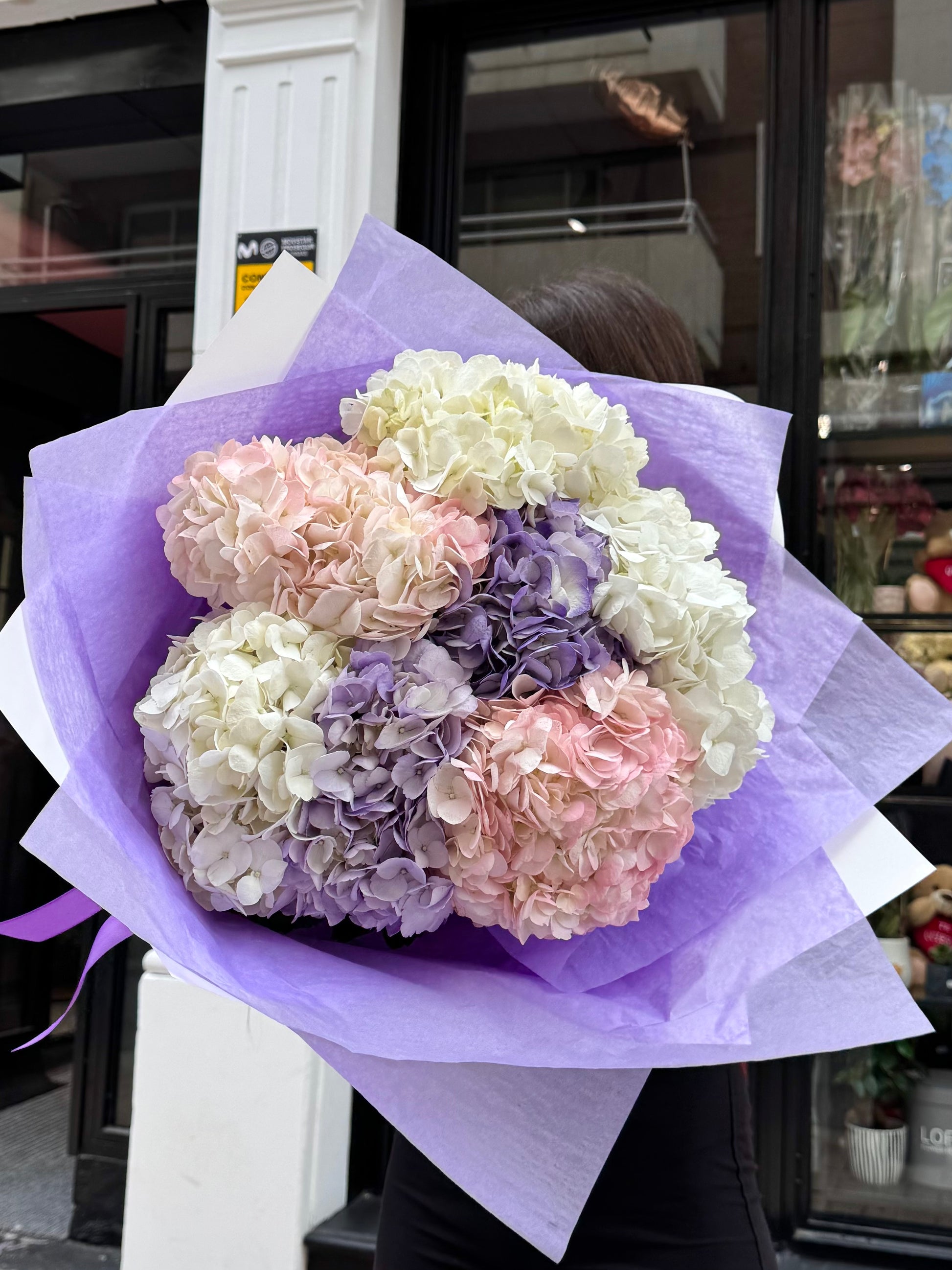 Abordamos cada pedido de forma individual. No solo confeccionamos un ramo elegante, sino que también adjuntamos una postal con tus deseos e instrucciones para el cuidado de las flores. Además, colocamos el ramo en una caja de color aguamarina y una bolsa de marca para un transporte seguro.