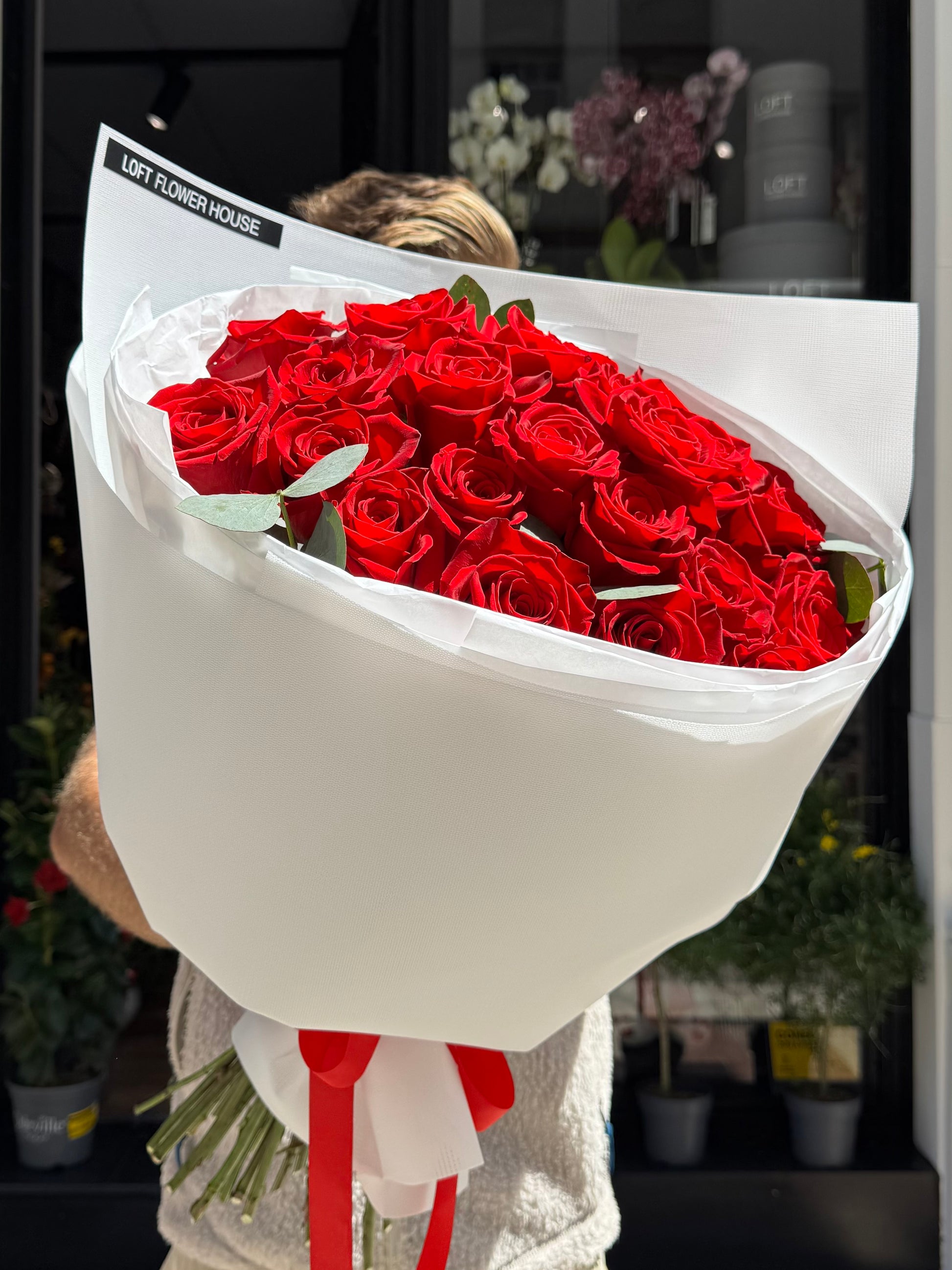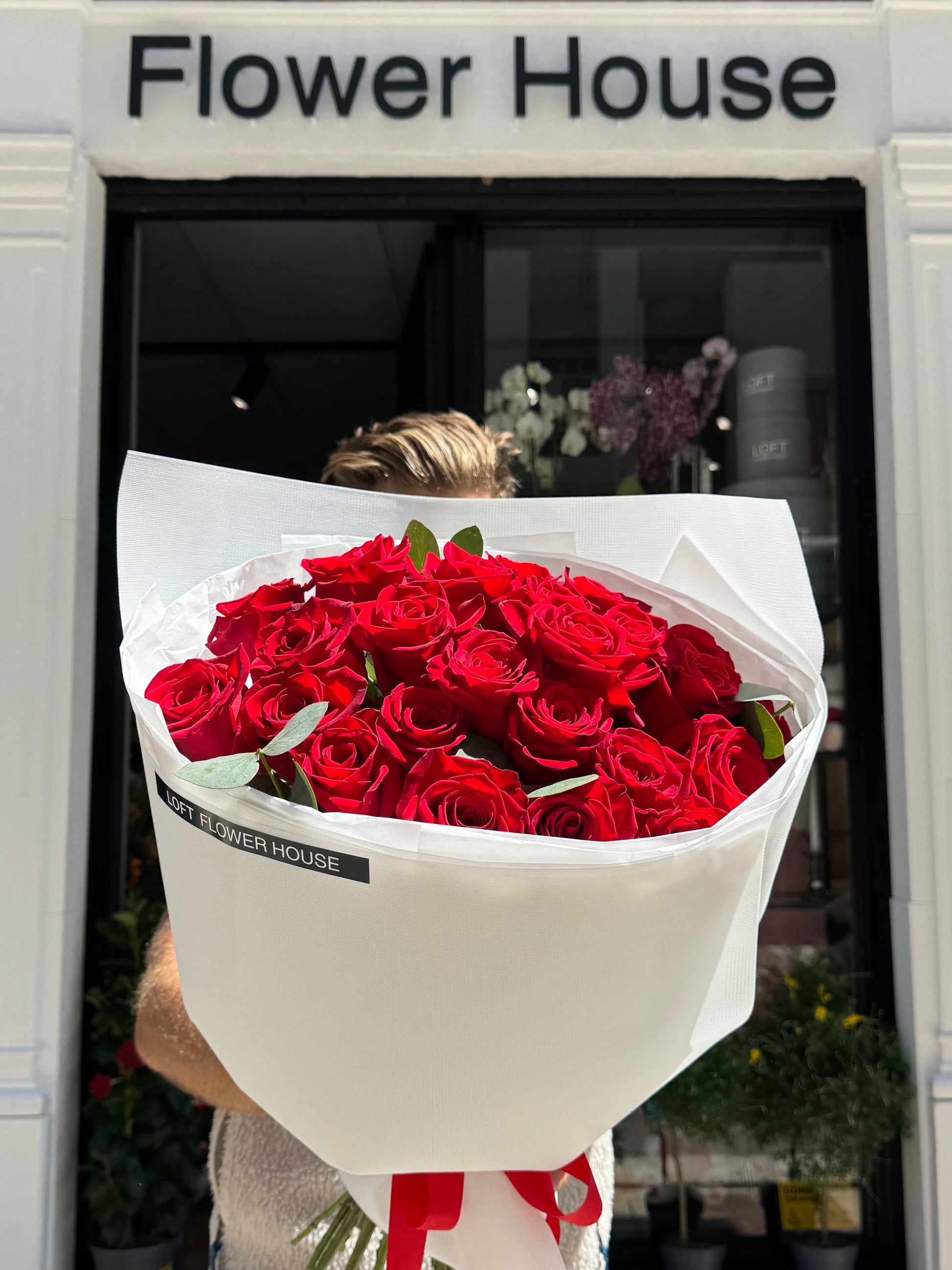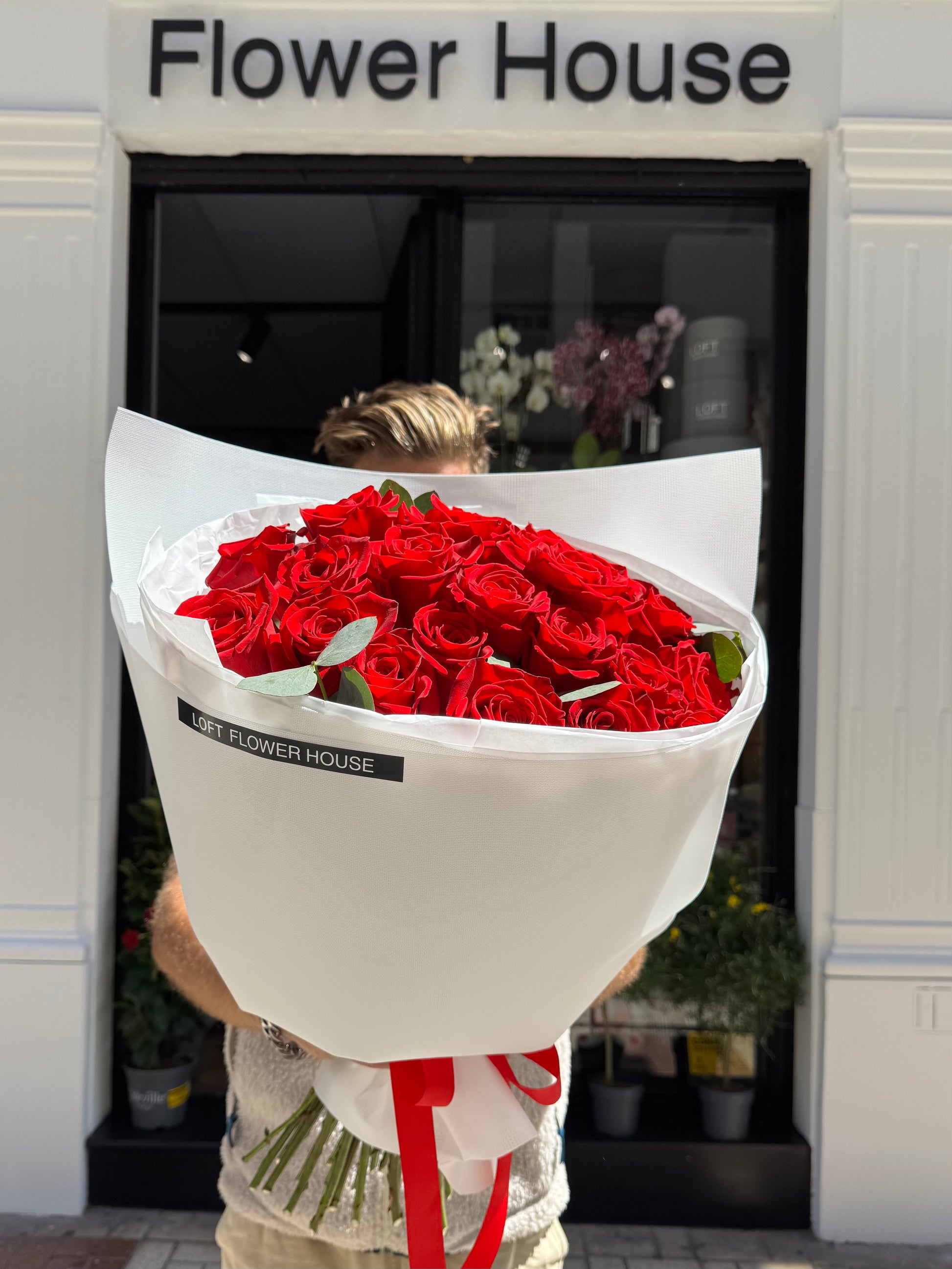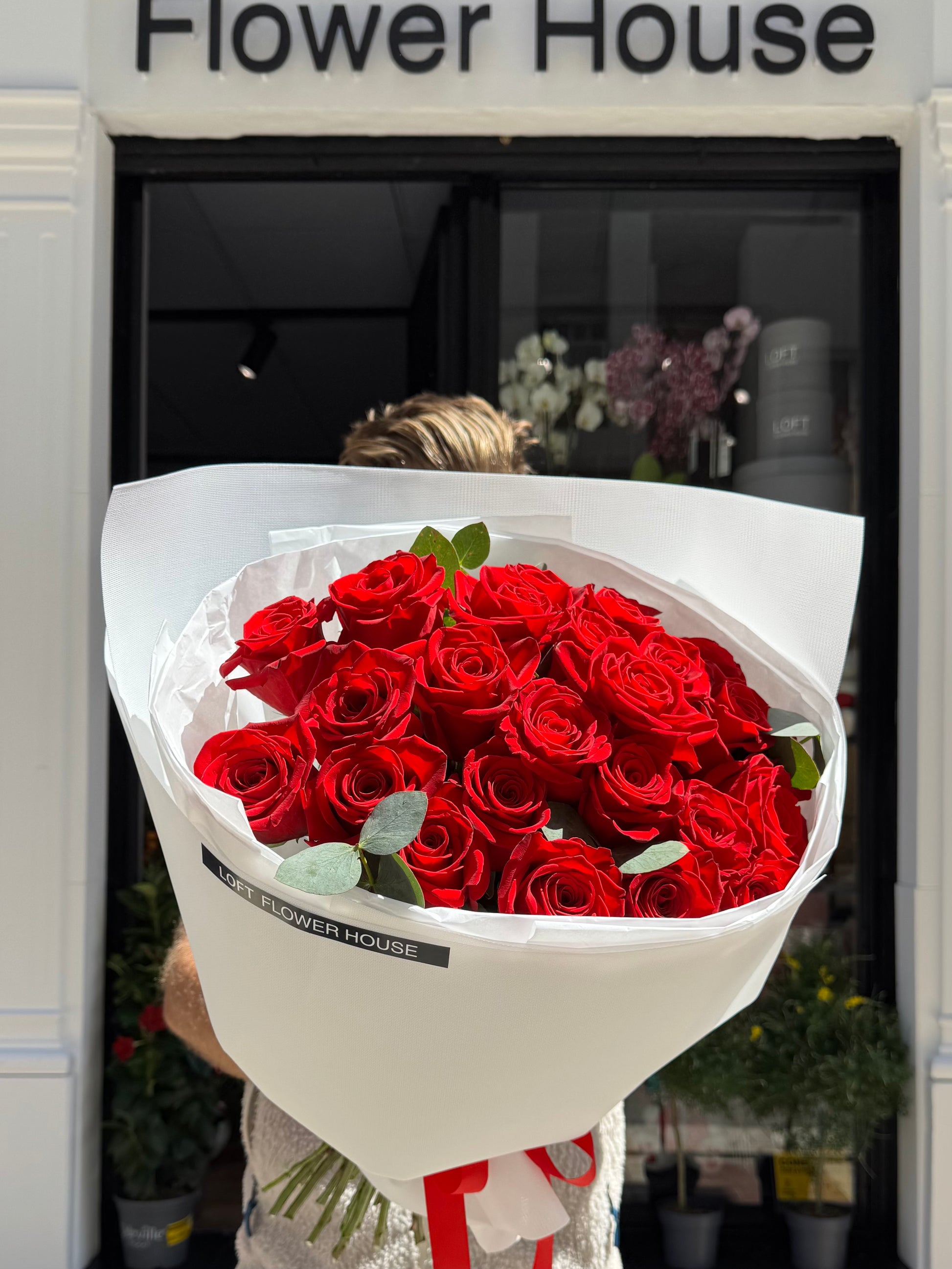 Abordamos cada pedido de forma individual. No solo confeccionamos un ramo elegante, sino que también adjuntamos una postal con tus deseos e instrucciones para el cuidado de las flores. Además, colocamos el ramo en una caja de color aguamarina y una bolsa de marca para un transporte seguro.