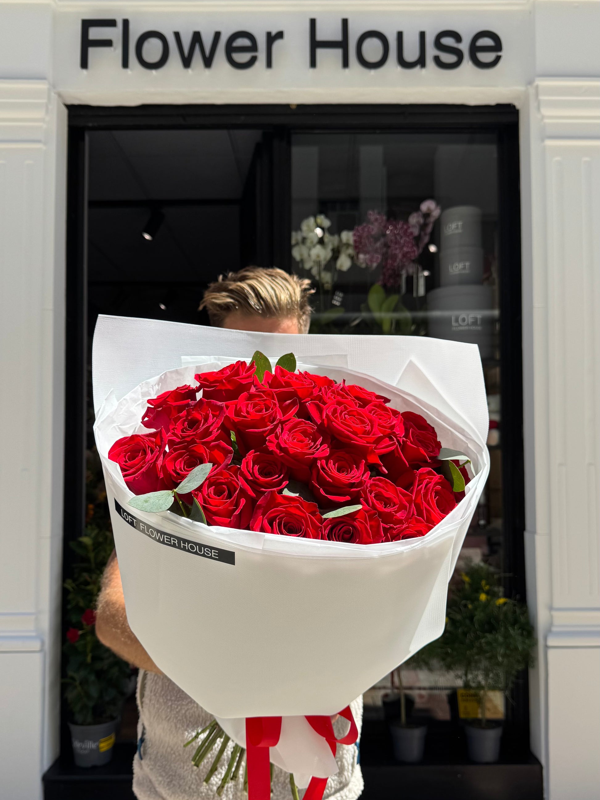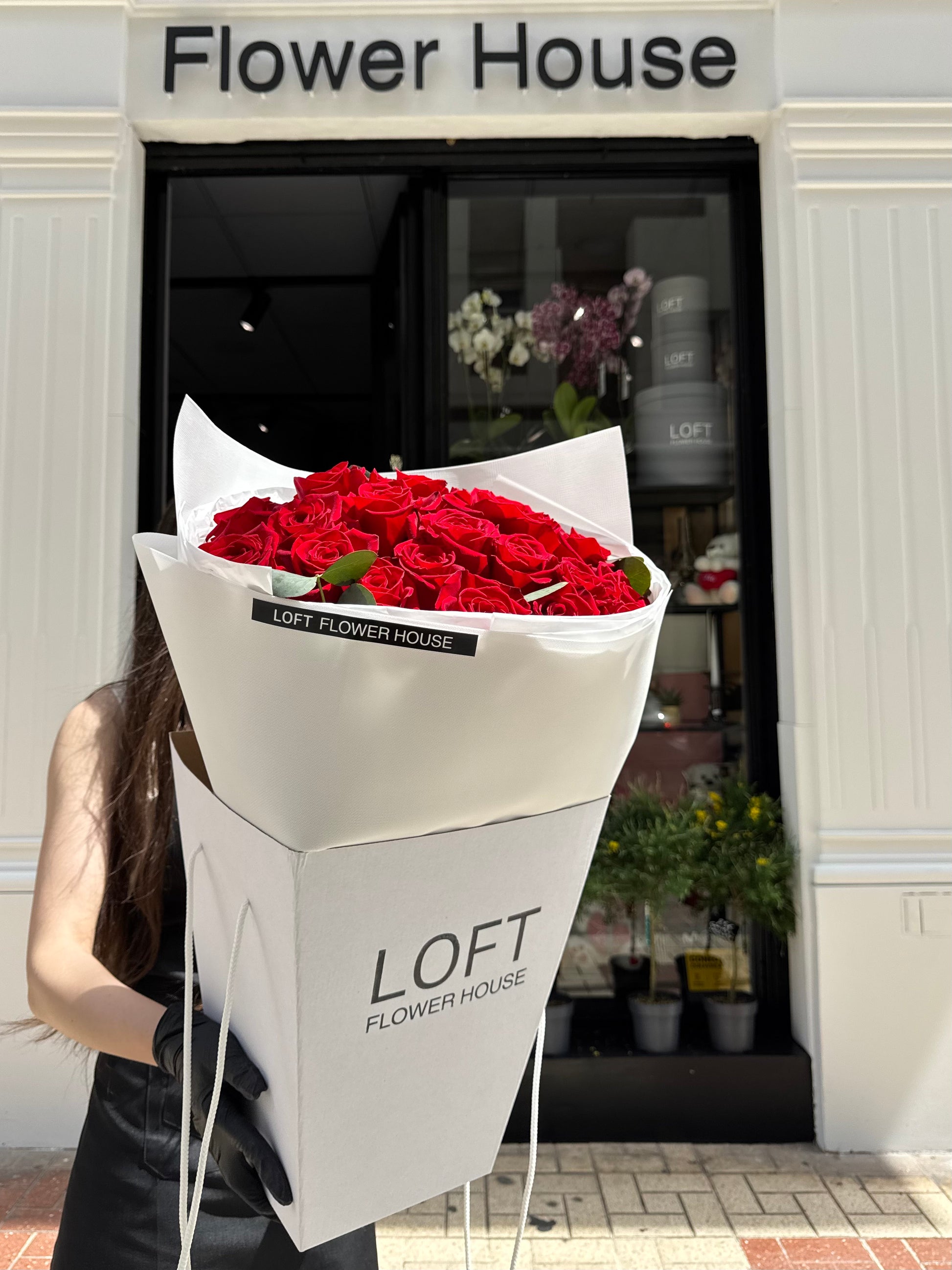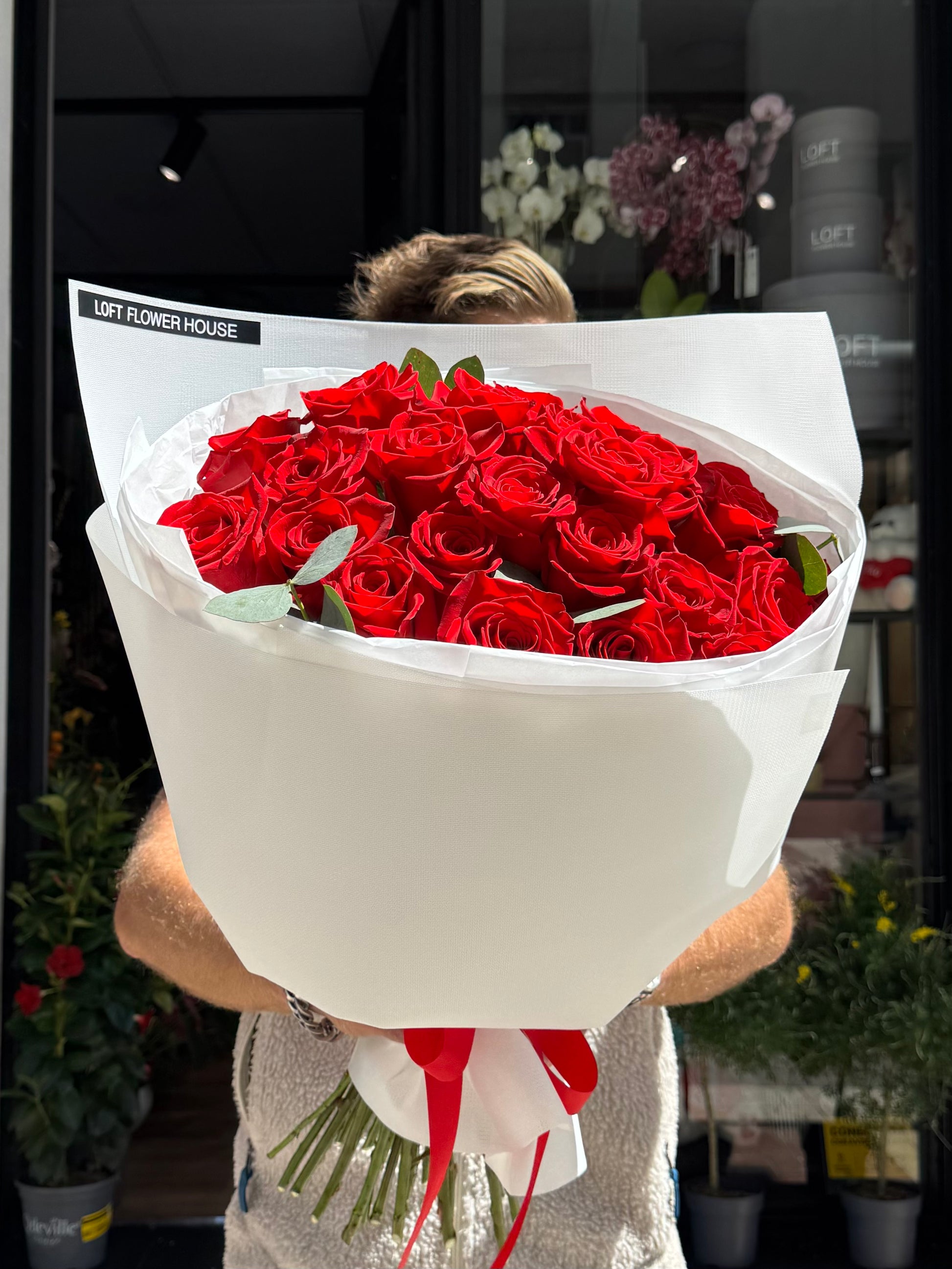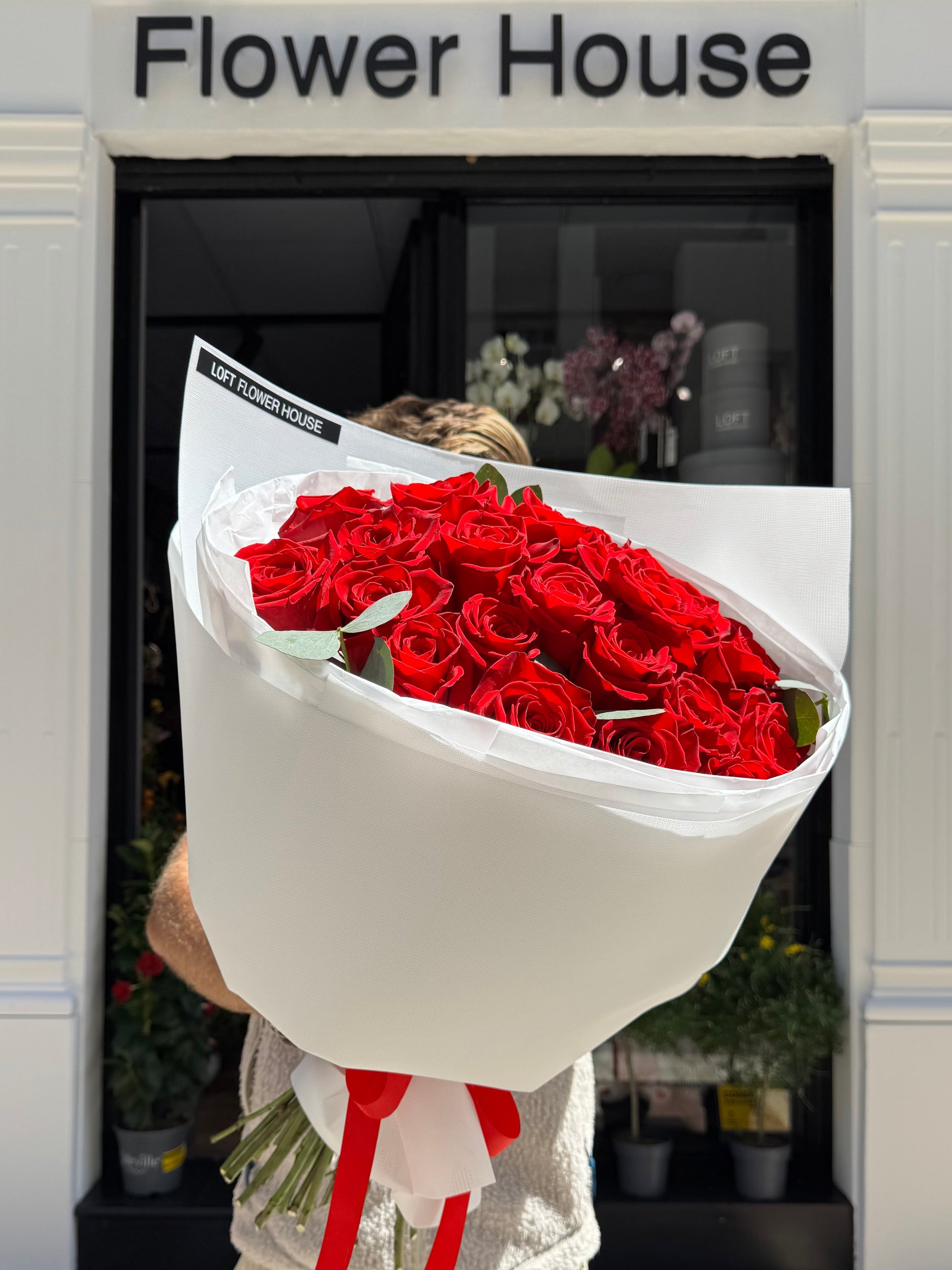 Abordamos cada pedido de forma individual. No solo confeccionamos un ramo elegante, sino que también adjuntamos una postal con tus deseos e instrucciones para el cuidado de las flores. Además, colocamos el ramo en una caja de color aguamarina y una bolsa de marca para un transporte seguro.