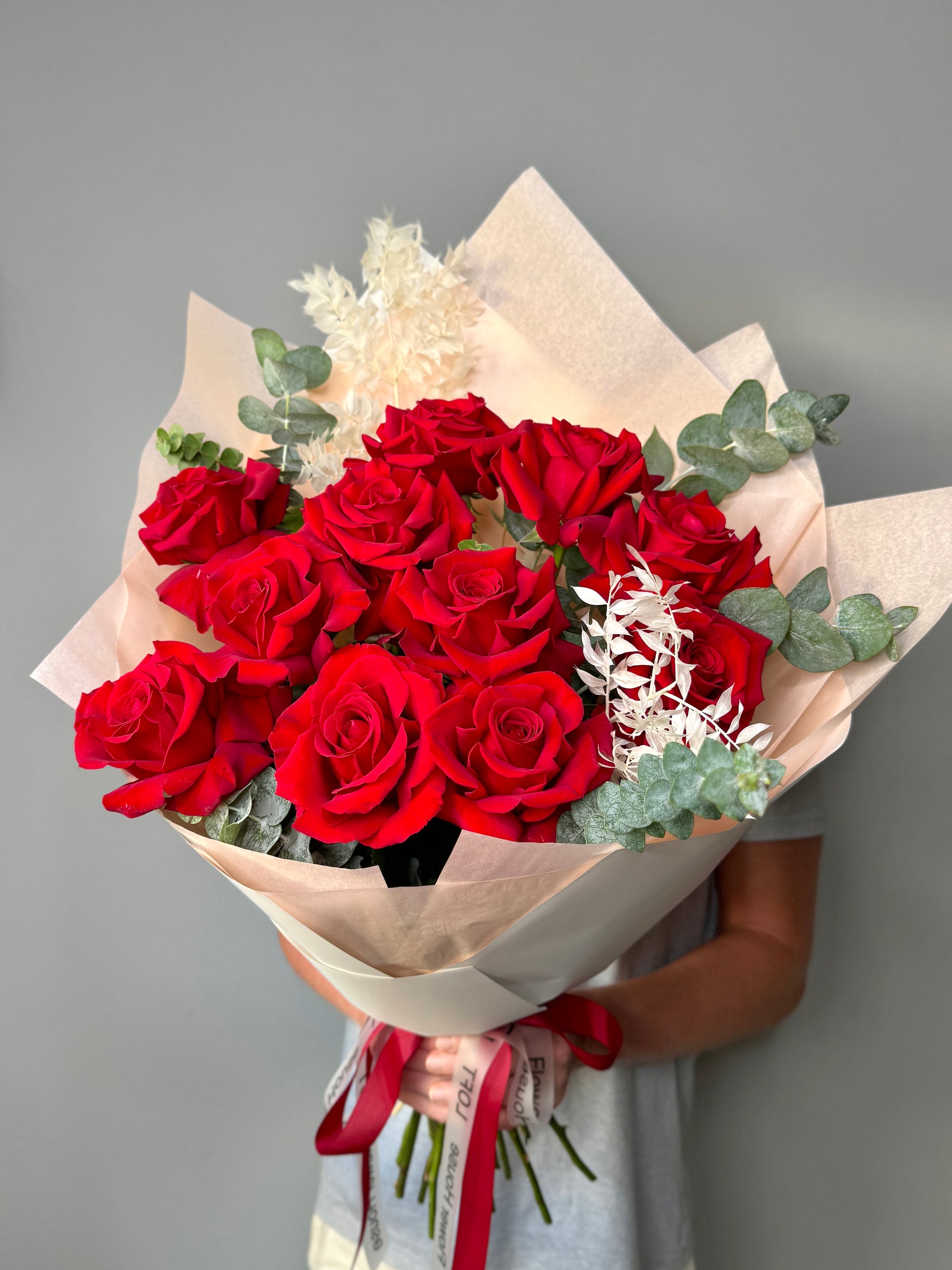 We approach each order individually. We will not only make a stylish bouquet, but also attach a postcard with your wishes, as well as flower care instructions. We also put the bouquet in an aqua box and branded bag for safe transportation.