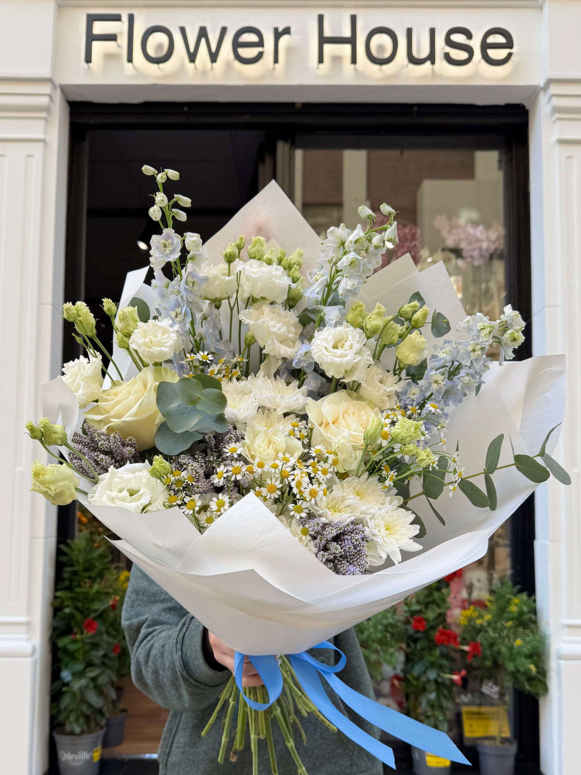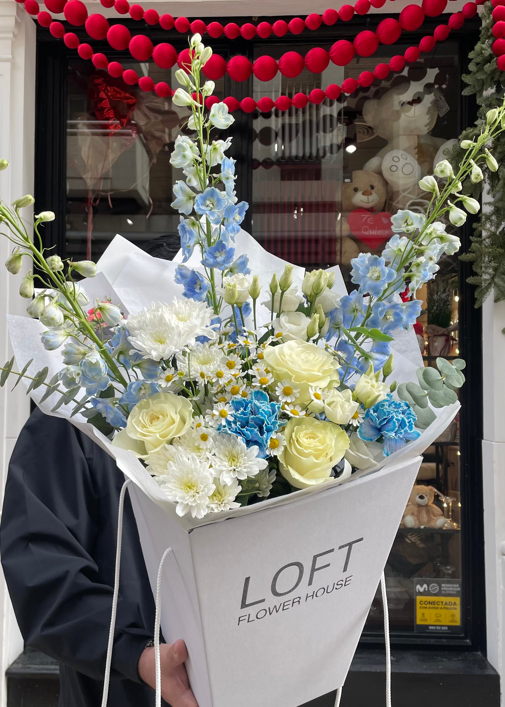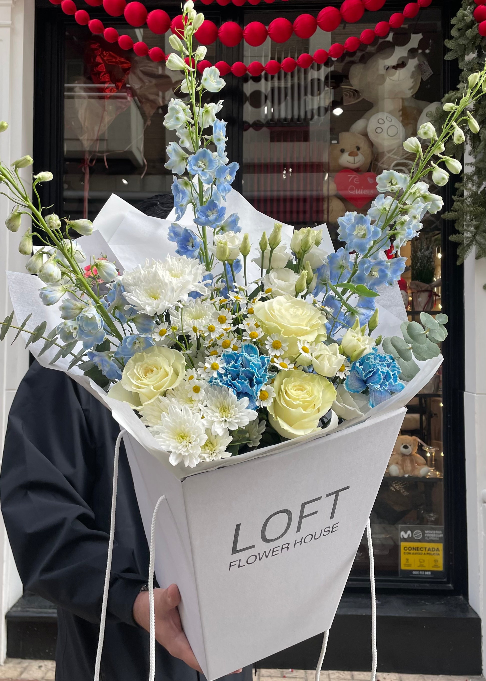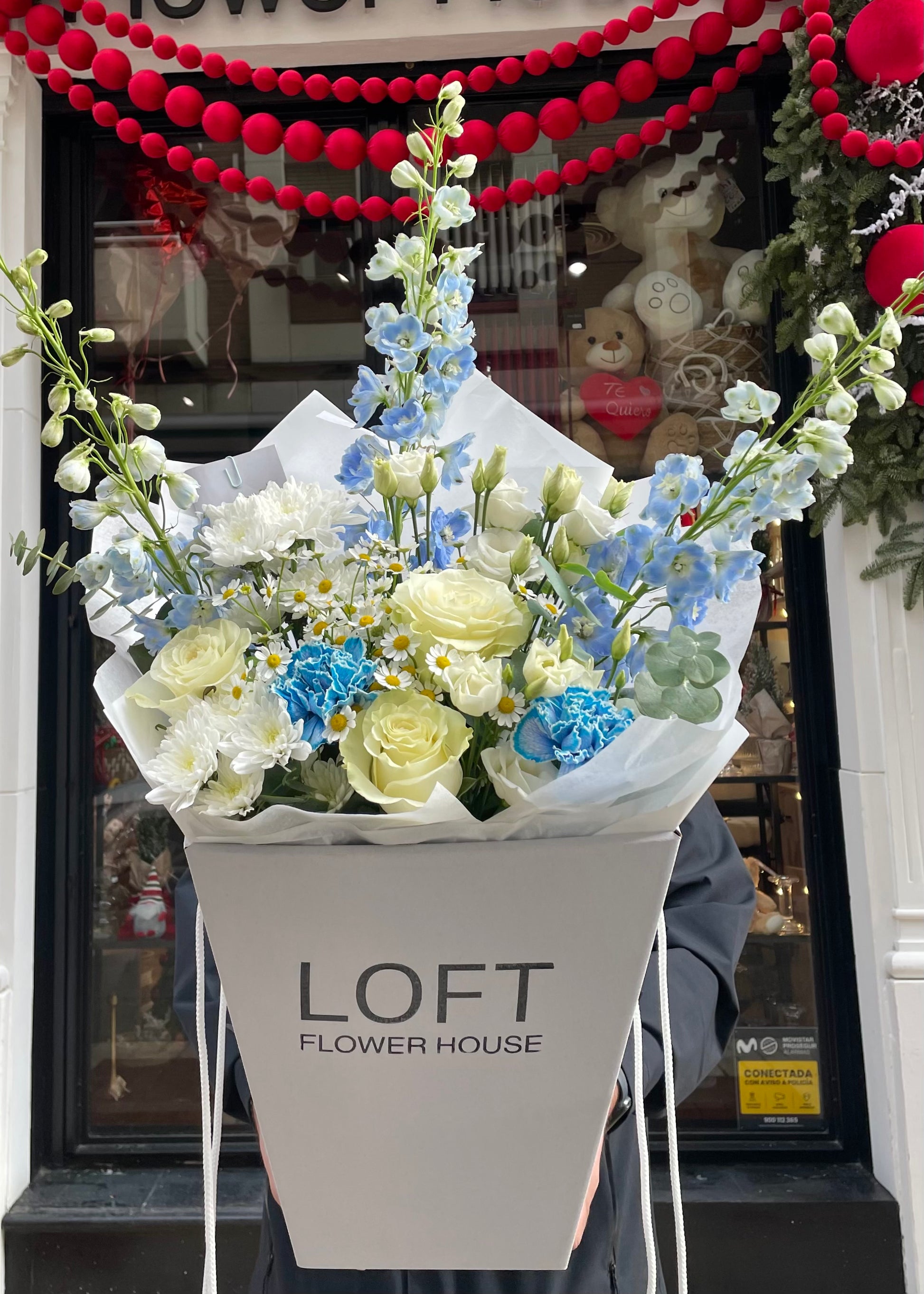 We approach each order individually. We will not only make a stylish bouquet, but also attach a postcard with your wishes, as well as flower care instructions. We also put the bouquet in an aqua box and branded bag for safe transportation.