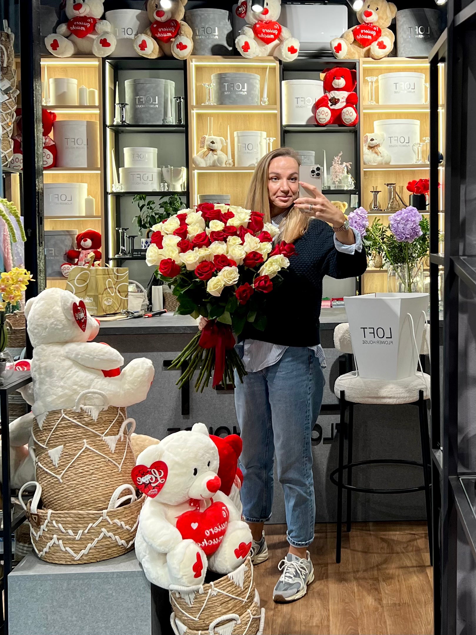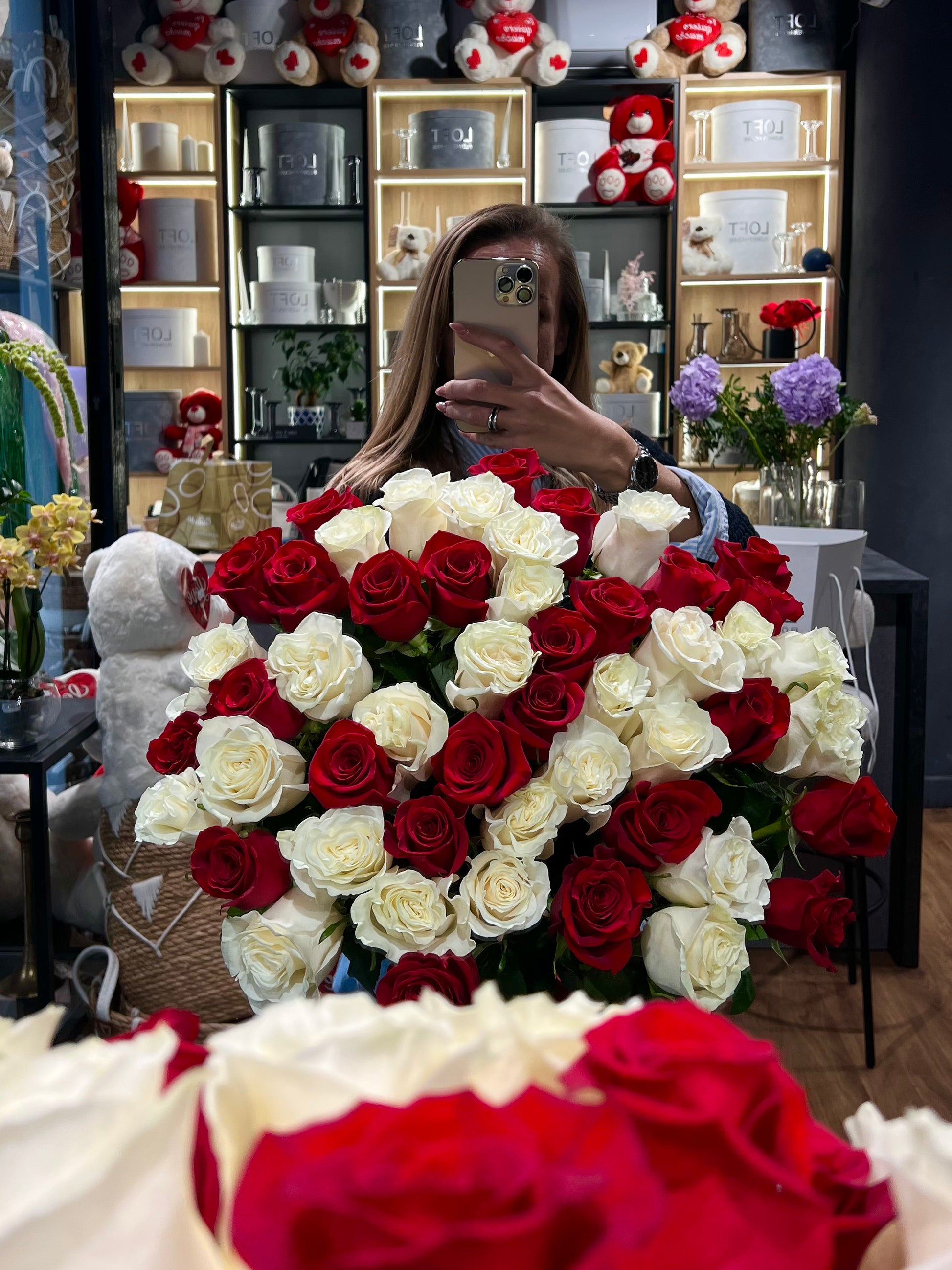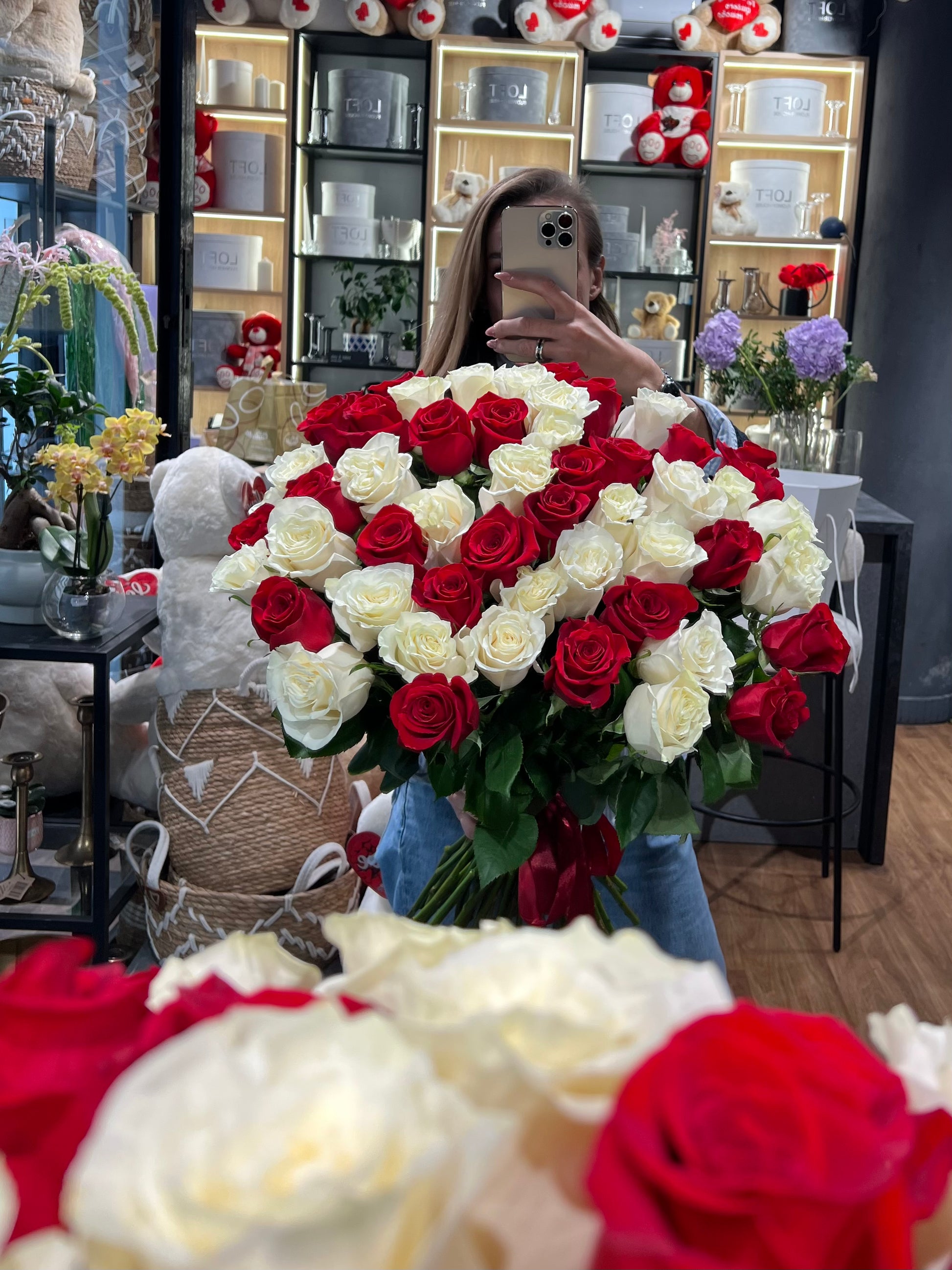 A stunning bouquet of red and white Ecuadorian roses - bold, elegant, and deeply romantic. Velvety red roses symbolize passion and love, while white roses add softness, purity, and sincerity, creating a perfect balance of emotion and beauty.