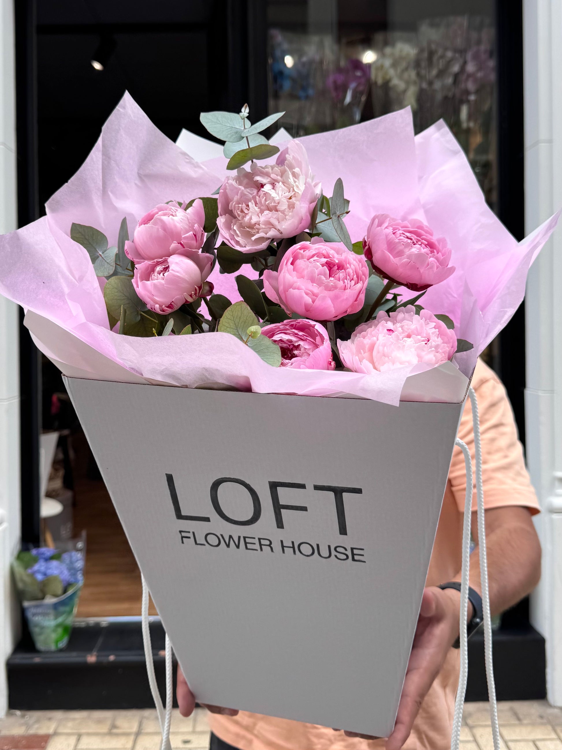 We approach each order individually. We will not only make a stylish bouquet, but also attach a postcard with your wishes, as well as flower care instructions. We also put the bouquet in an aqua box and branded bag for safe transportation.