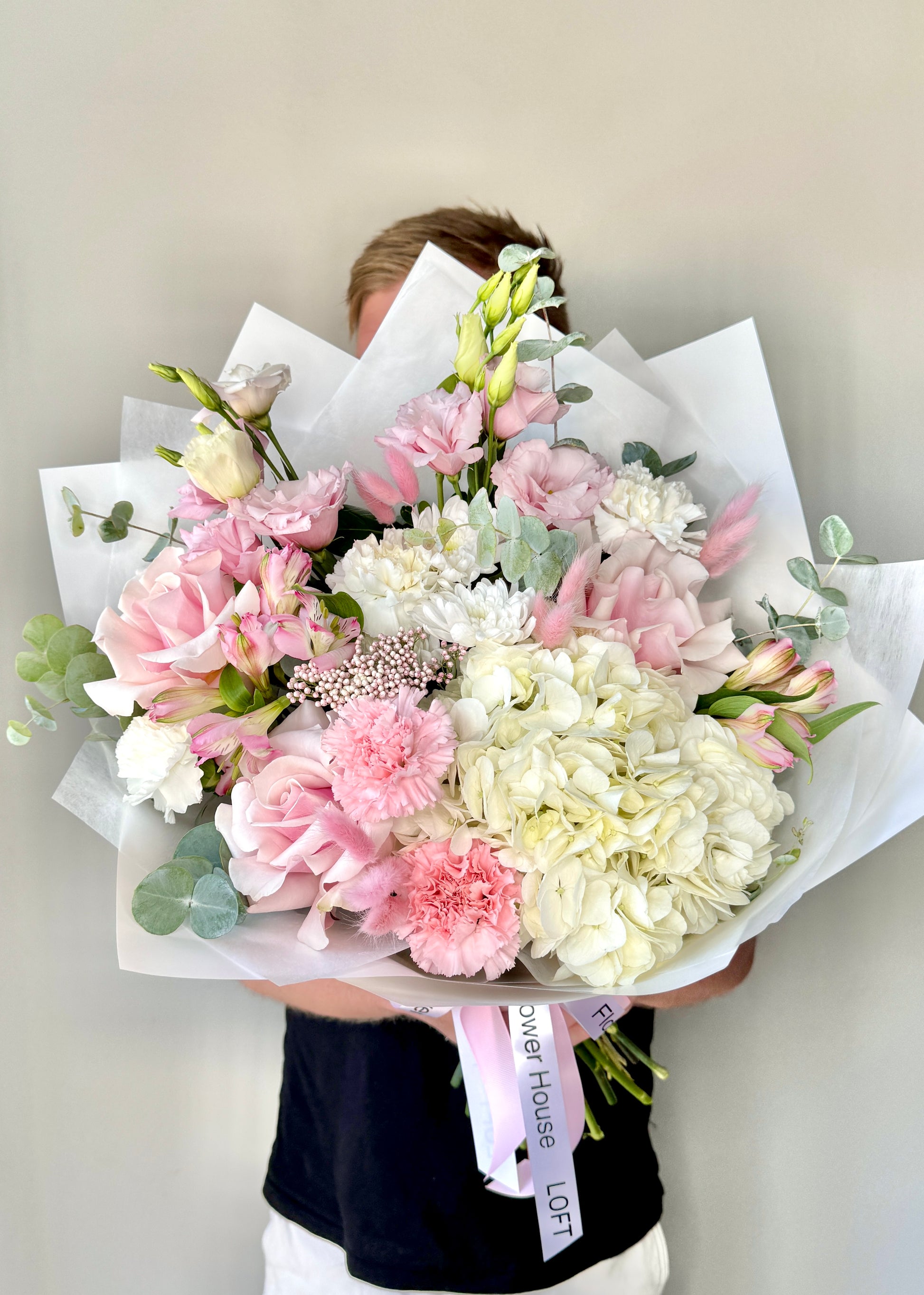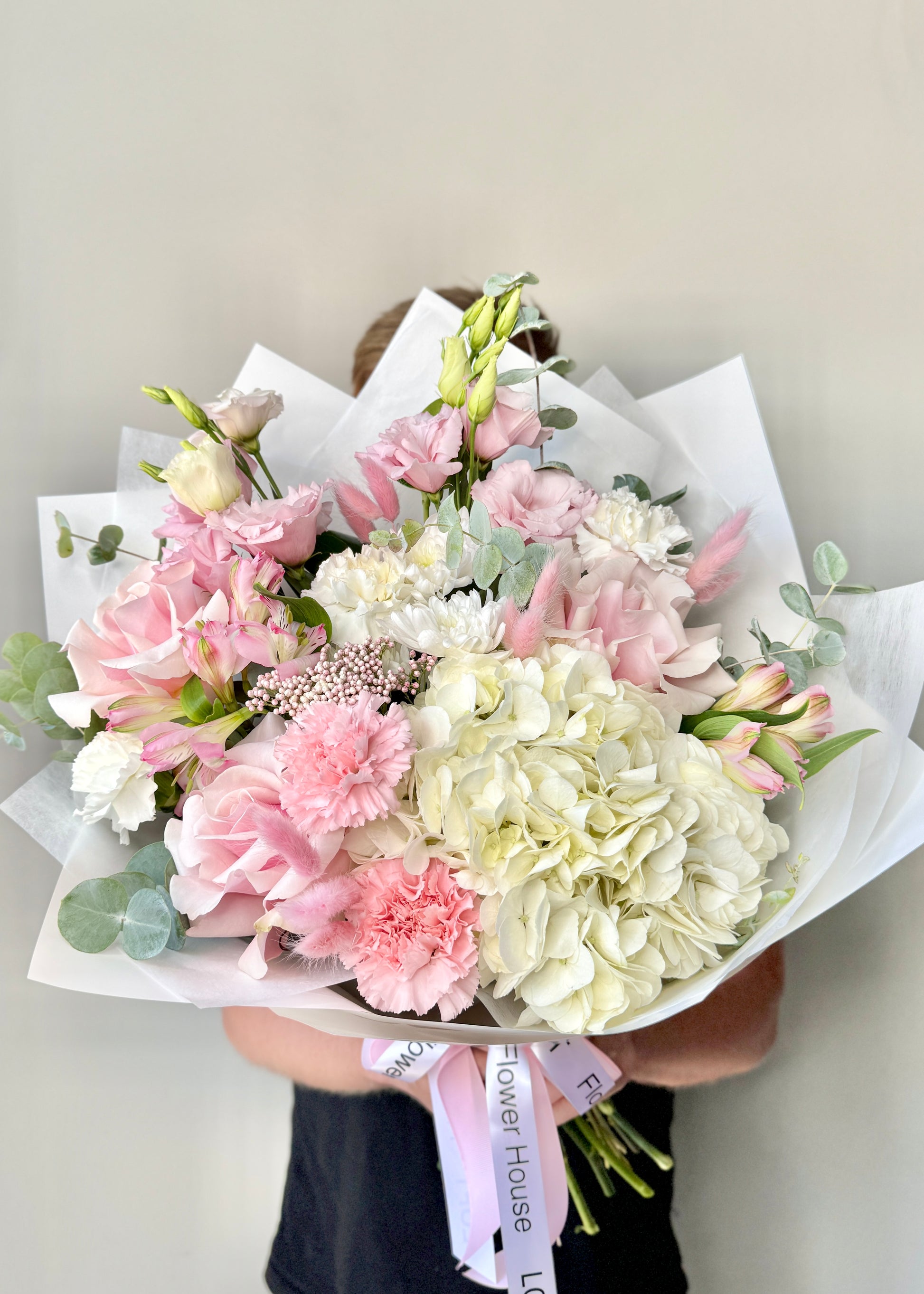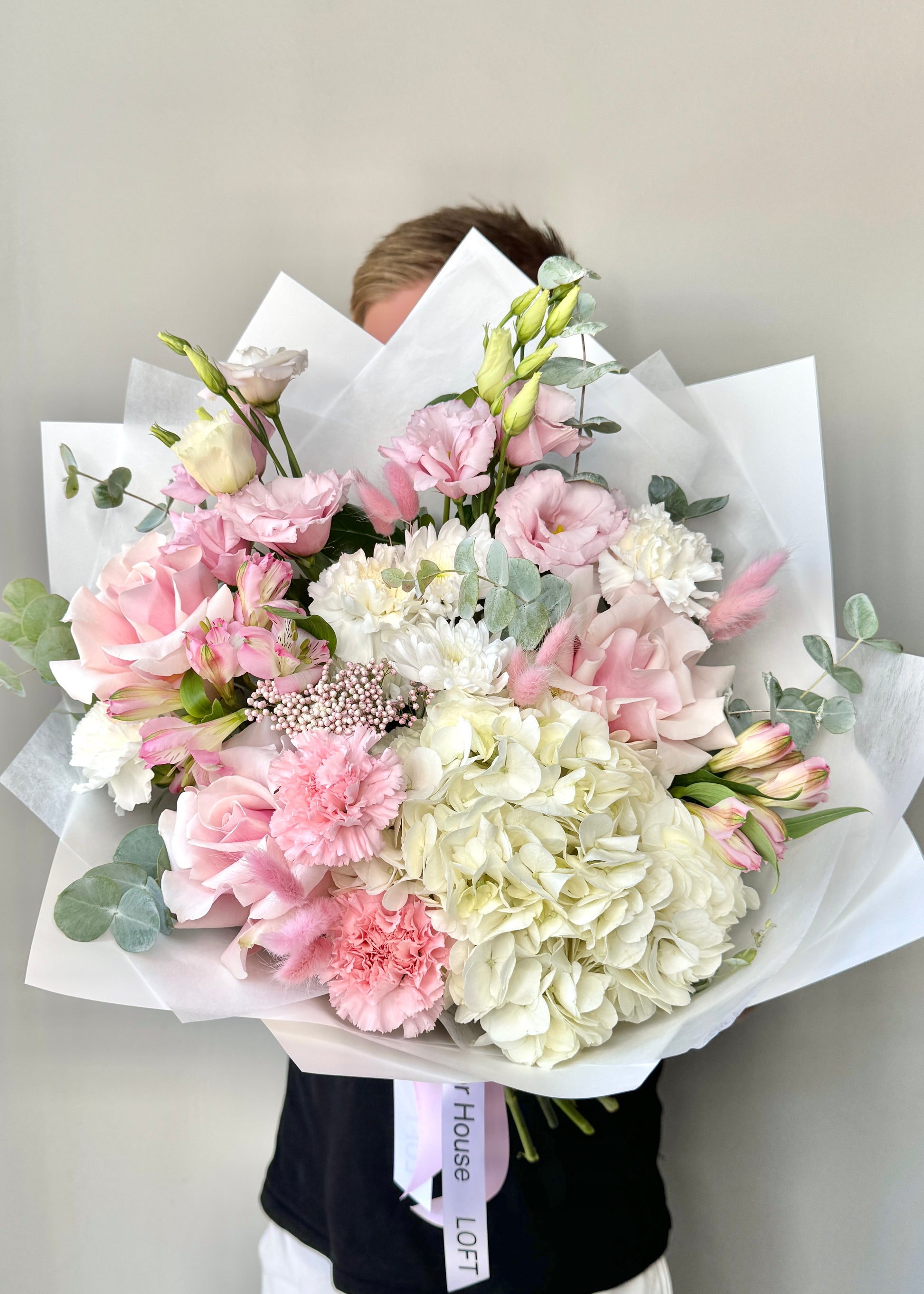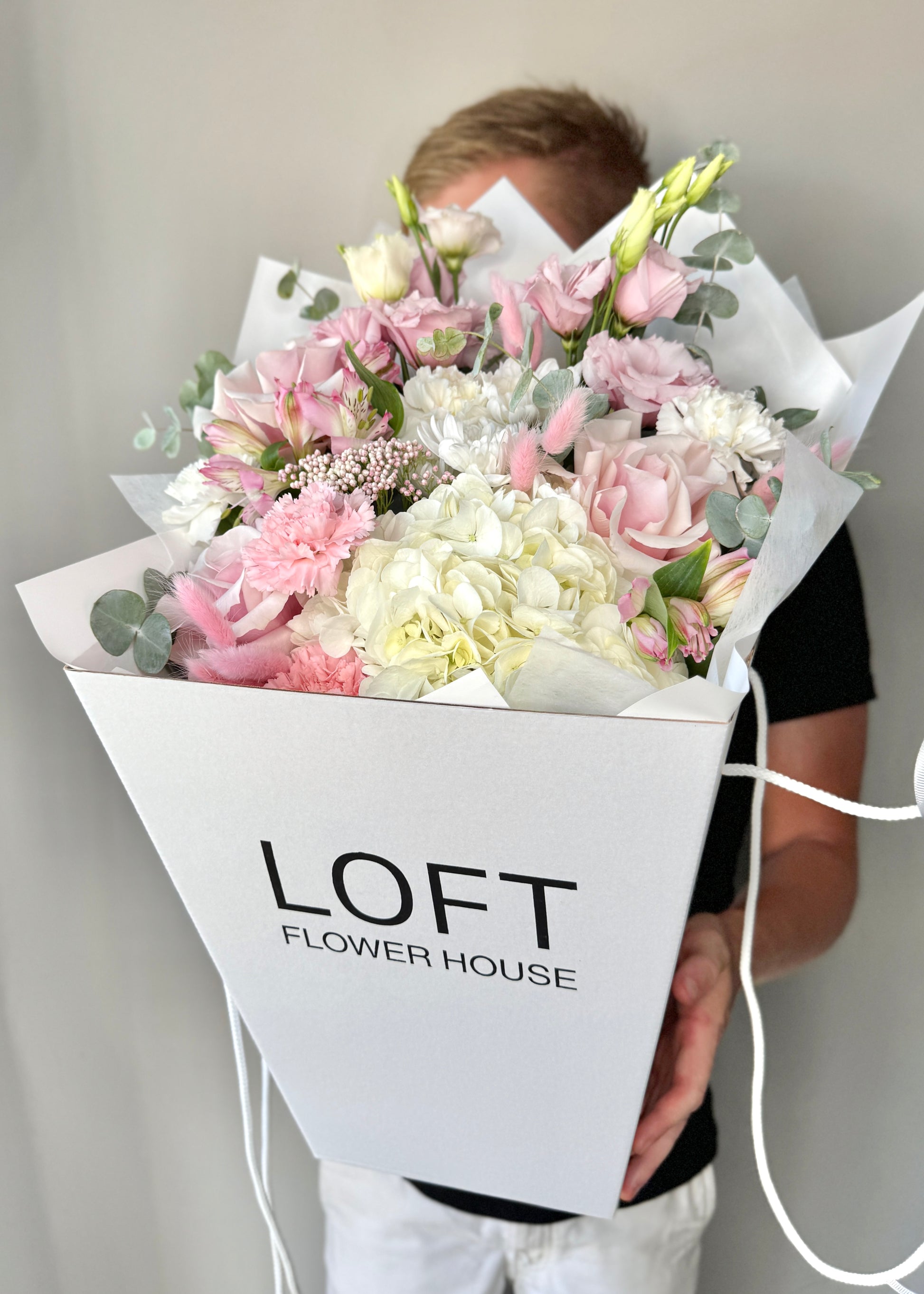 We approach each order individually. We will not only make a stylish bouquet, but also attach a postcard with your wishes, as well as flower care instructions. We also put the bouquet in an aqua box and branded bag for safe transportation.