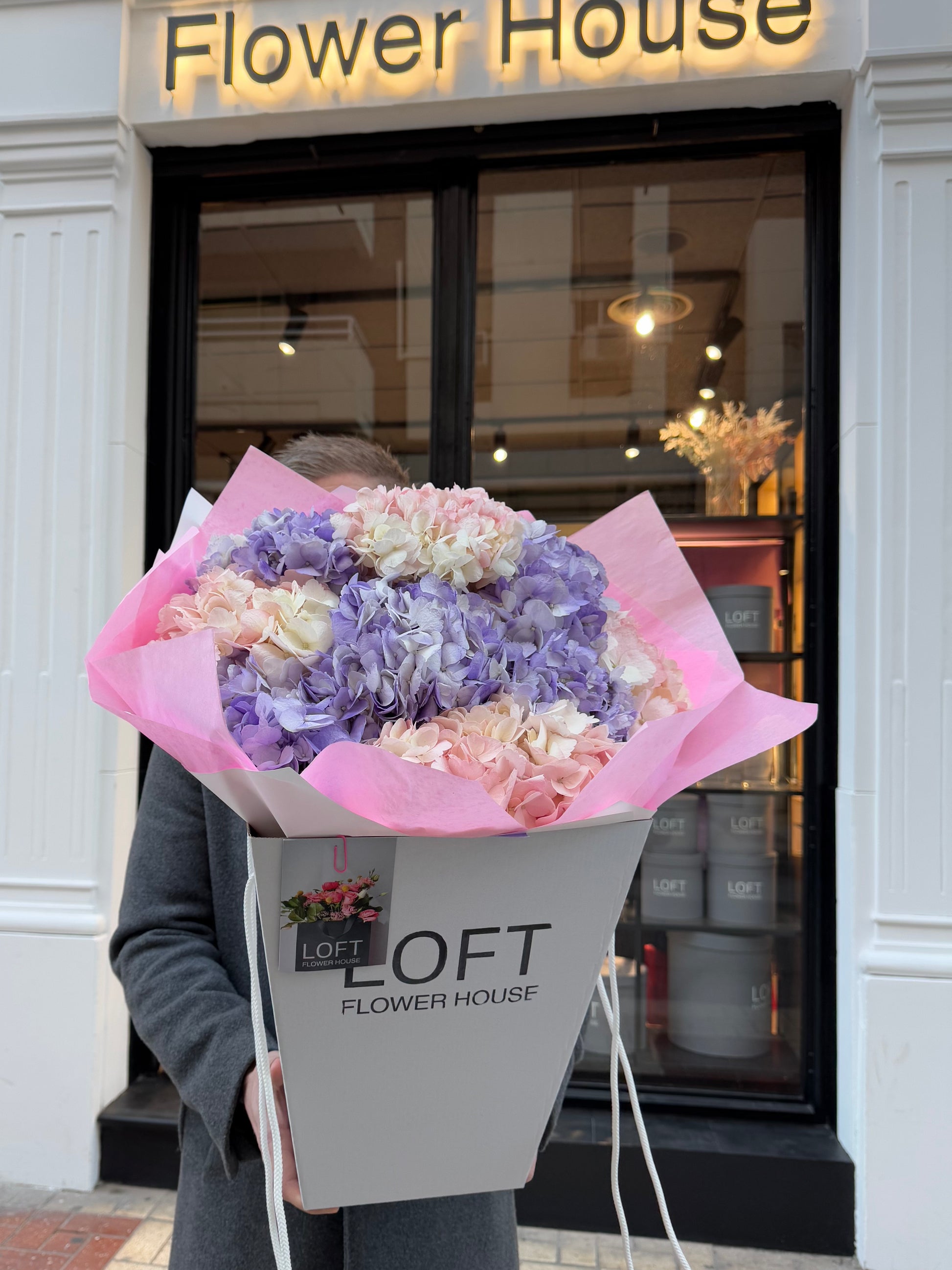 We approach each order individually. We will not only make a stylish bouquet, but also attach a postcard with your wishes, as well as flower care instructions. We also put the bouquet in an aqua box and branded bag for safe transportation.