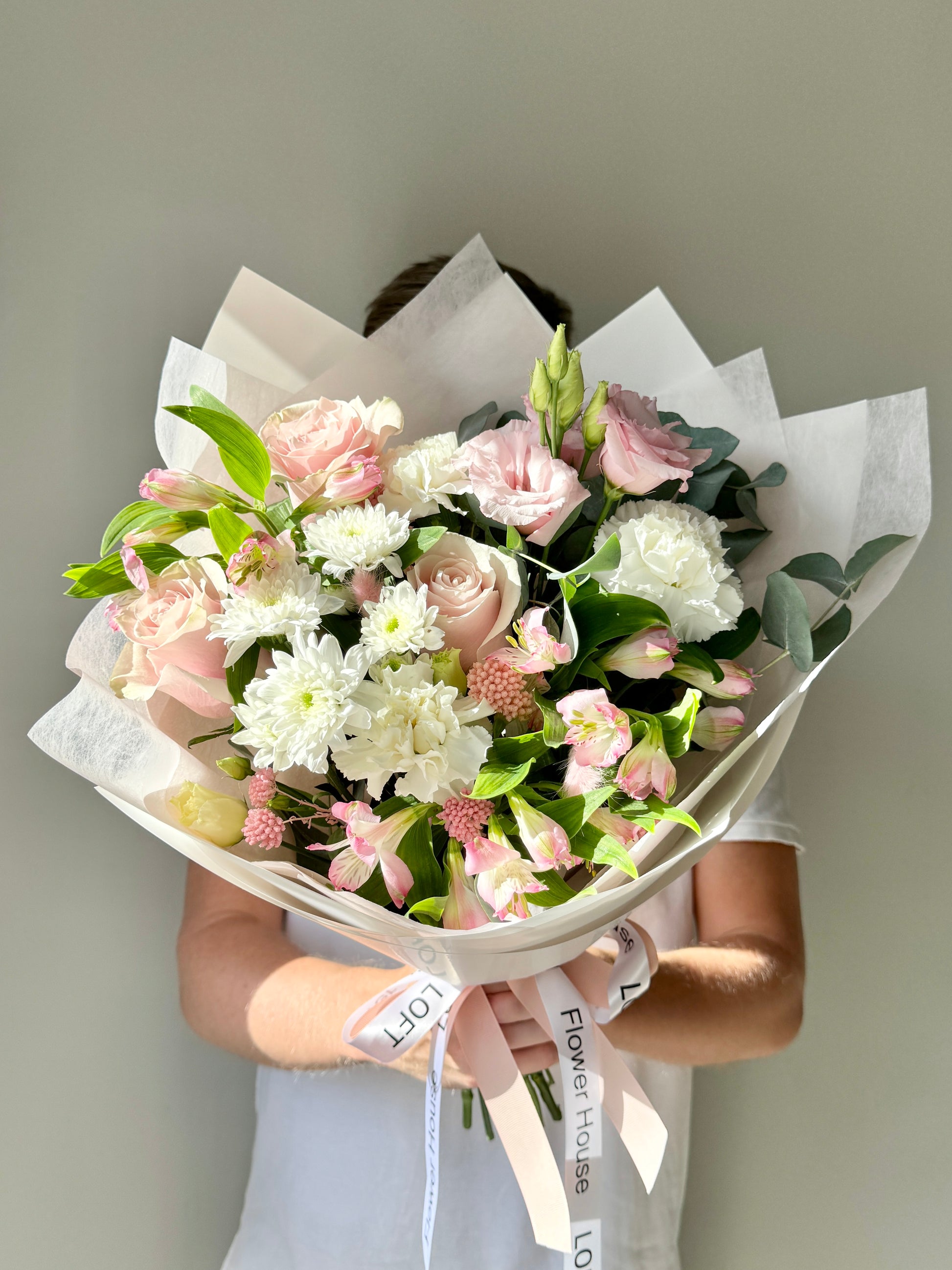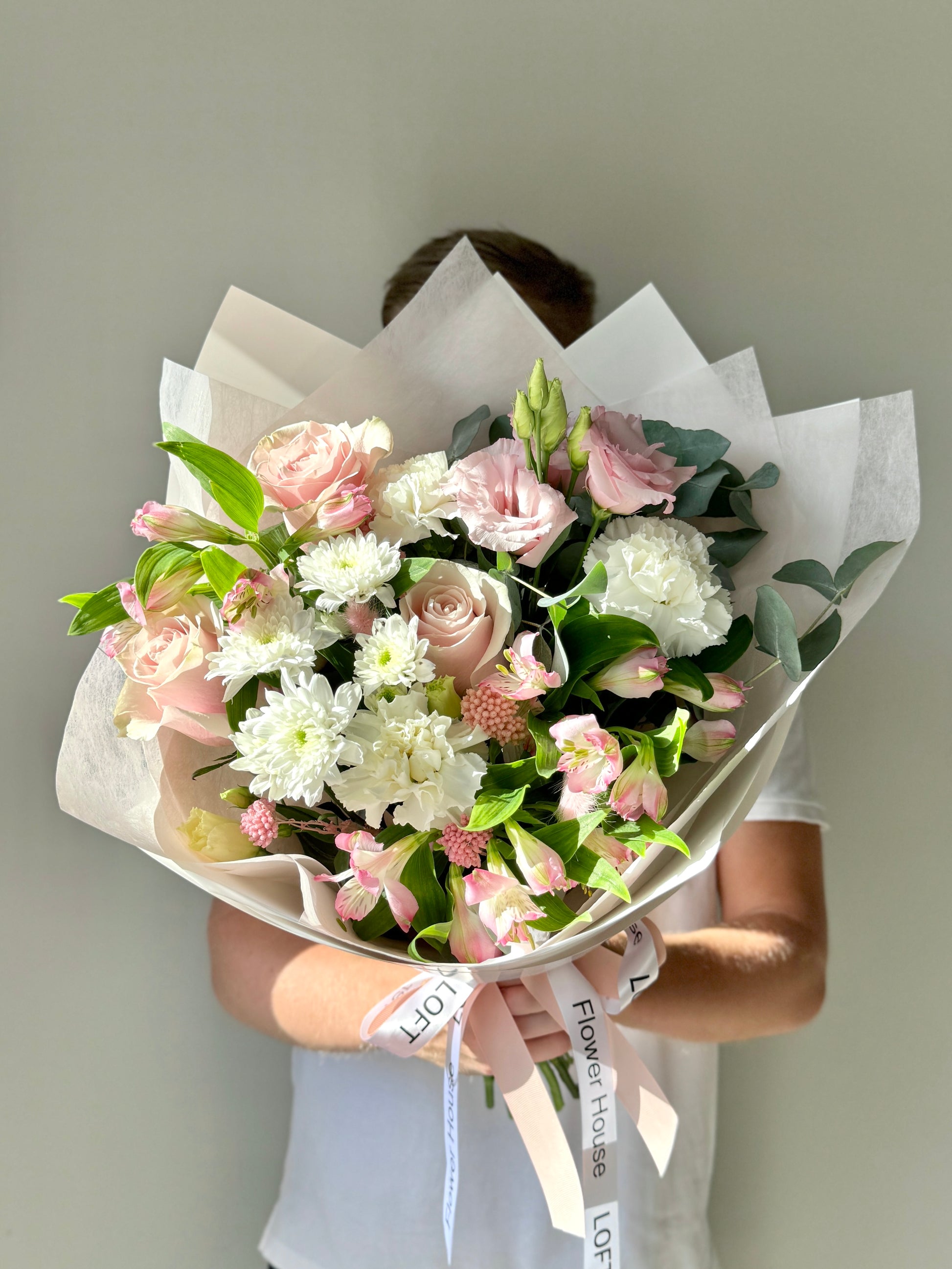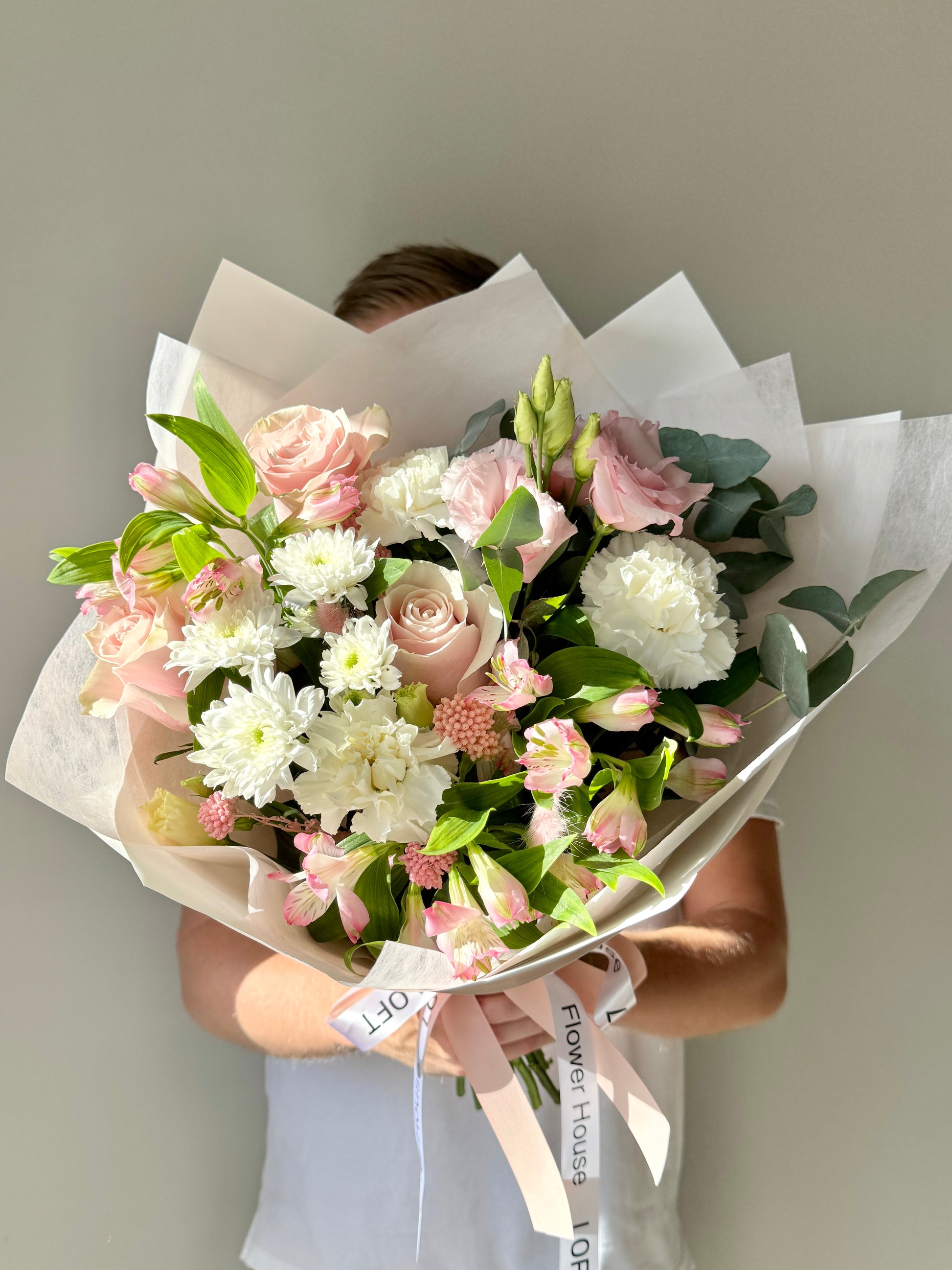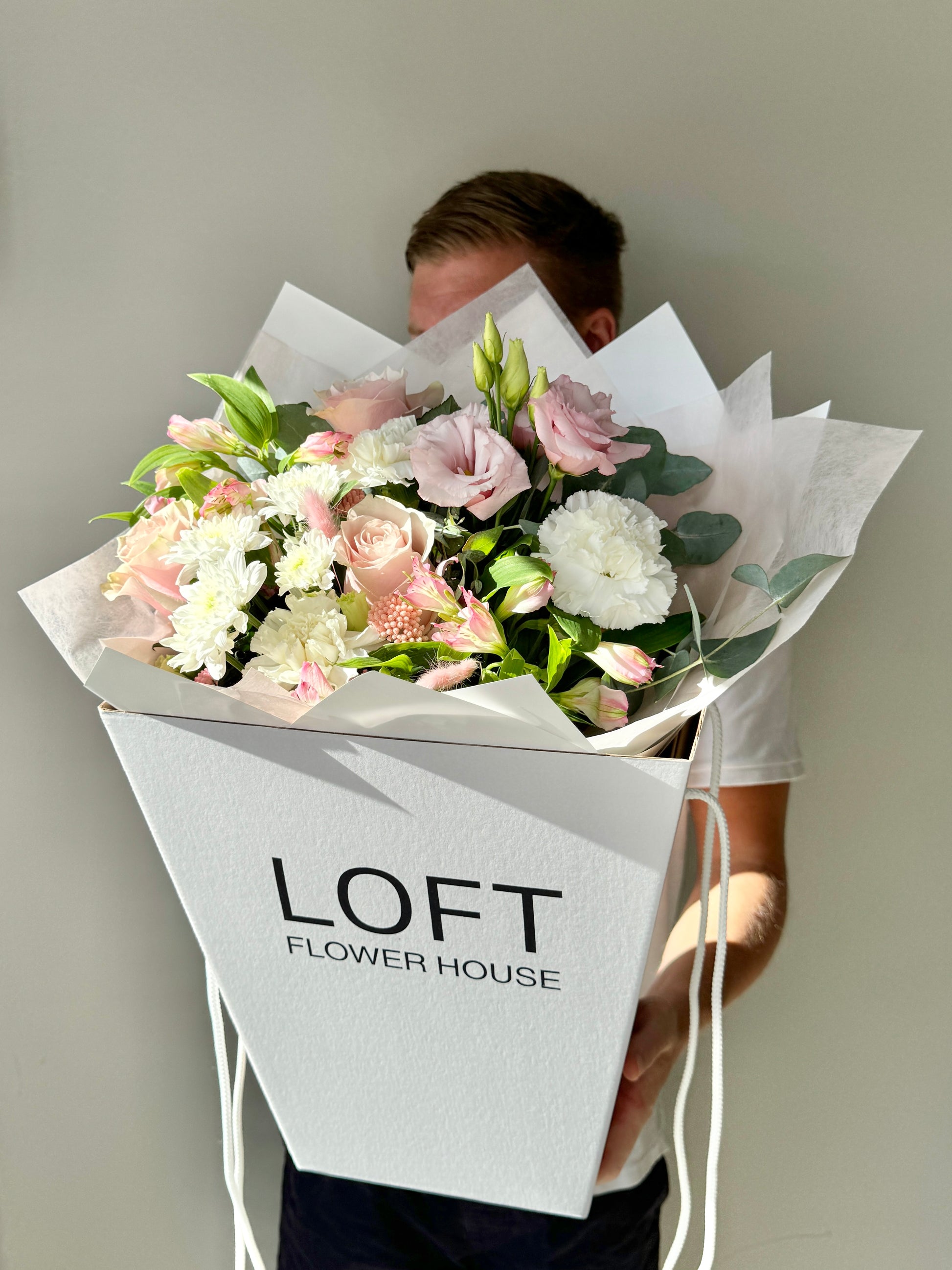 We approach each order individually. We will not only make a stylish bouquet, but also attach a postcard with your wishes, as well as flower care instructions. We also put the bouquet in an aqua box and branded bag for safe transportation.