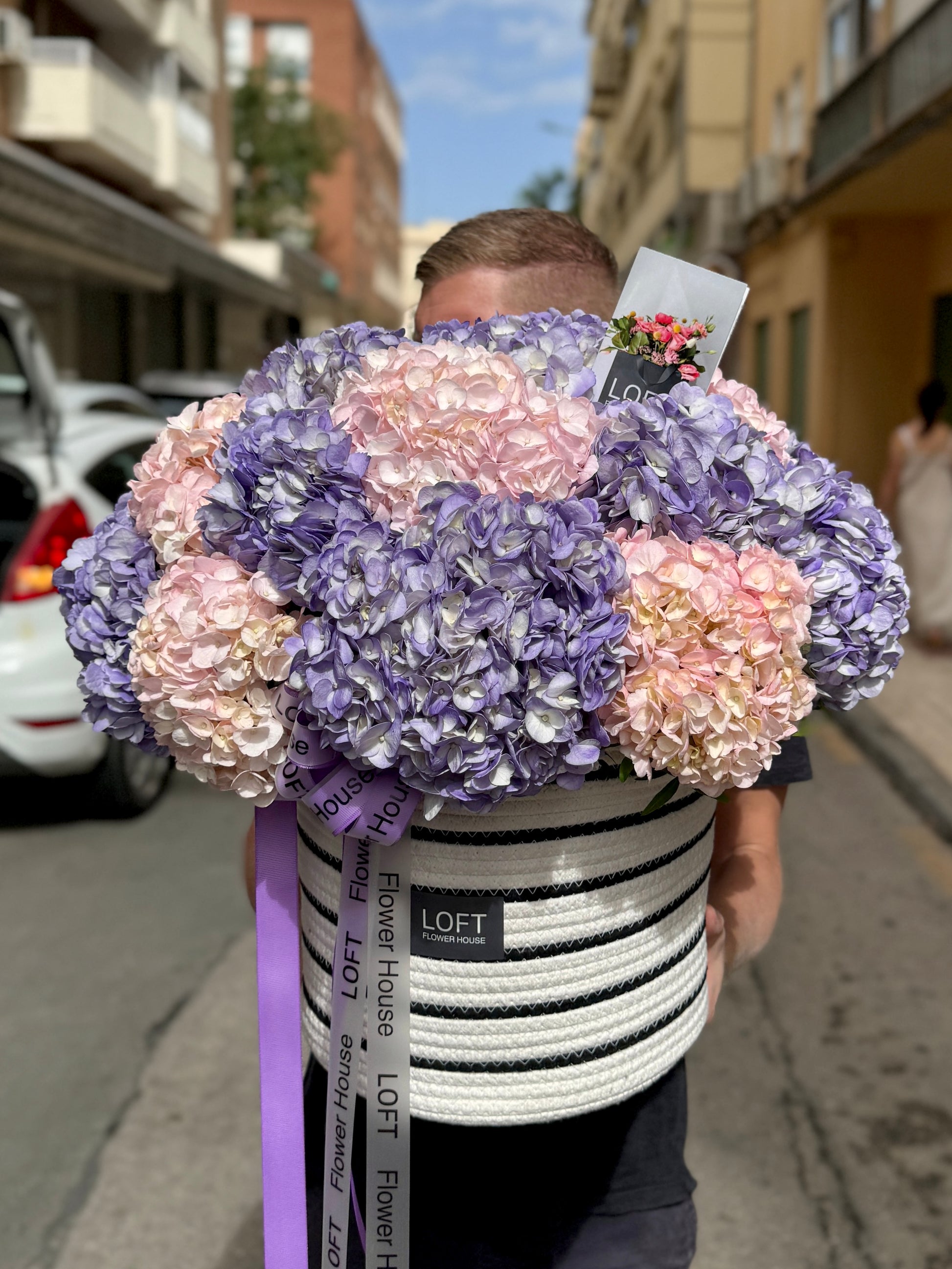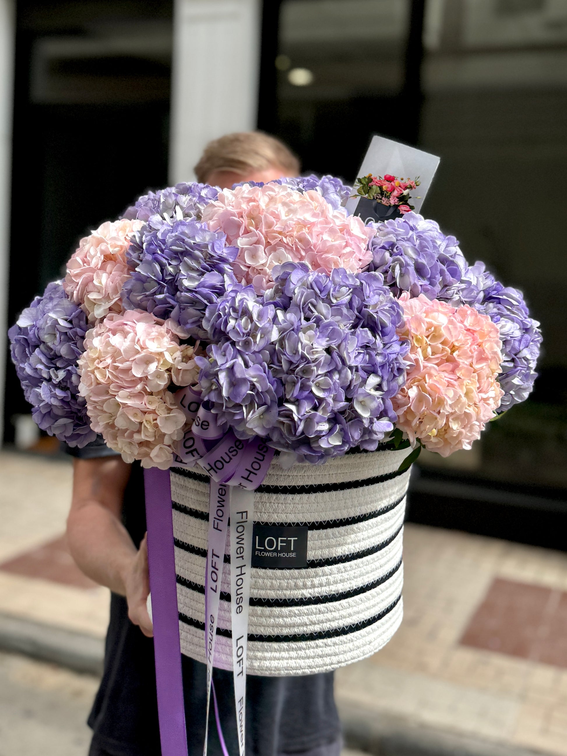 We approach each order individually. We will not only make a stylish bouquet, but also attach a postcard with your wishes, as well as flower care instructions. We also put the bouquet in an aqua box and branded bag for safe transportation.